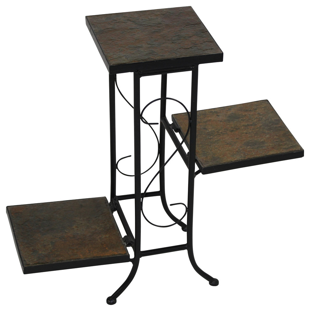 3 Tier Plant Stand With Slate Top Mediterranean Plant Stands And Telephone Tables By 4d Concepts