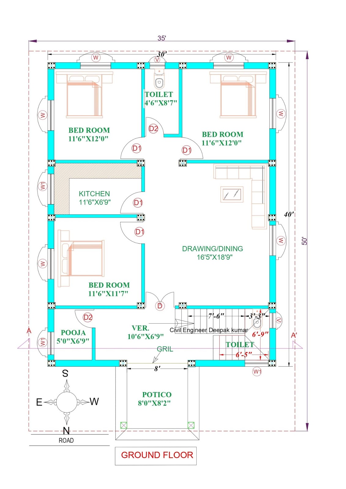 House Plan For 30 Feet By 40 Feet Plot Plot Size 133 Square Yards House Plans My House Plans Home Design Floor Plans