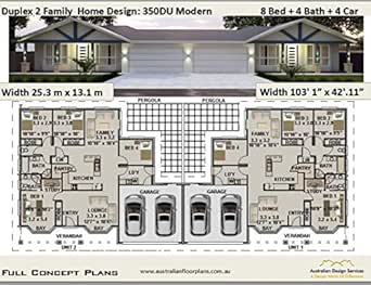 Amazon Com Duplex 2 Family House Plan 350du Modern 8 Bedroom 4 Bathroom 4 Car Garage Concept Plans Includes Detailed Floor Plan And Elevation Plans Ebook Morris Chris Designs Australian Kindle Store