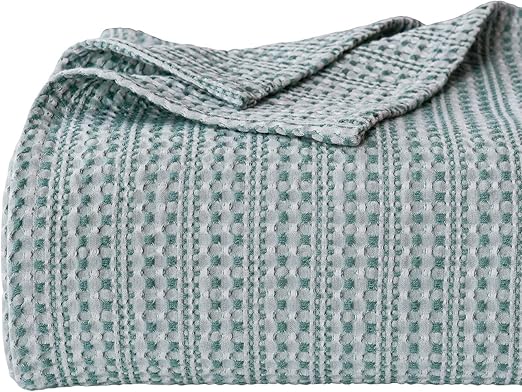 Amazon Com Phf Cotton Waffle Blanket Queen Size 90 X 90 Inches Yarn Dyed Weave Bed Texture Home Decor Softness Comfort Lightweight All Season Green Kitchen Dining