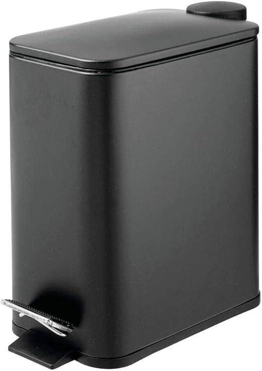 Amazon Com Mdesign 1 3 Gallon Rectangular Small Steel Step Trash Can Wastebasket Garbage Container Bin For Bathroom Powder Room Bedroom Black Home Kitchen