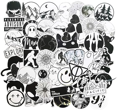 Amazon Com Stickers For Water Bottles Big 50 Pack Cute Cartoon Aesthetic Trendy Stickers For Teens Girls Kids Perfect For Waterbottle Laptop Phone Travel Extra Durable 100 Vinyl Black White Computers Accessories