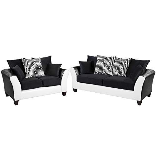 Black Red Two Tone Leather 3pc Modern Living Room Set