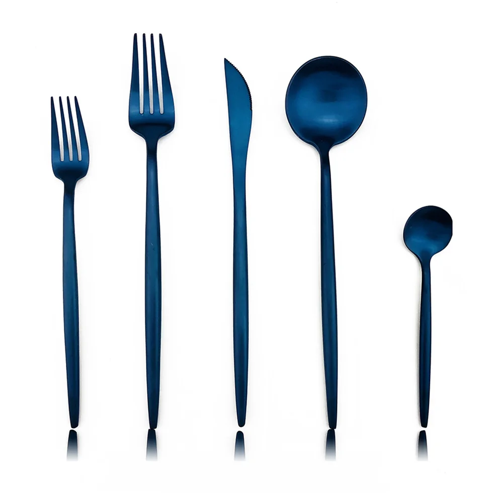 20pcs Stylish Matte Blue Flatware Set Stainless Steel Black Cutlery Set Knives Dessert Forks Spoon Dinnerware Silverware Set Flatware Sets Aliexpress