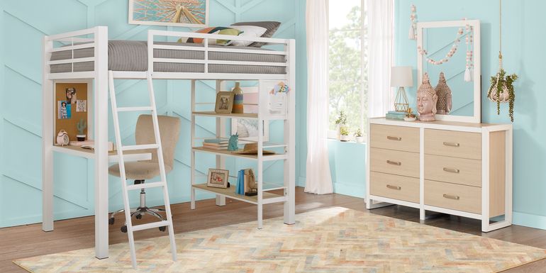 Incredible Loft Bed Design With Striped Blanket Also Study Table Under Bunk Bed Including Rug On Woode Dorm Room Designs Loft Bunk Beds Girls Bedroom Furniture