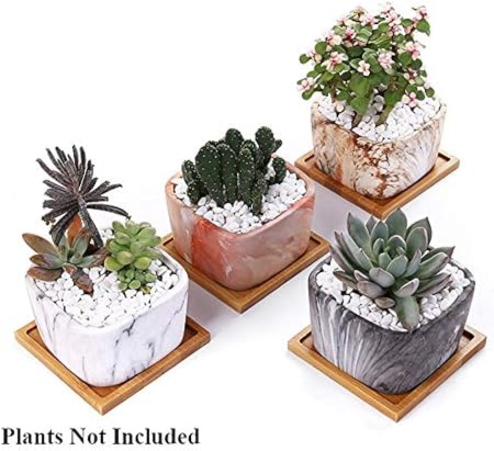Amazon Com Appyhut 3 5 Inch Square Plant Pots Marbling Ceramic Succulent Planter Cactus Pots Small Flower Pots Bamboo Herb Planters Vase Decorative Pots For Plants With Drainage Hole Bamboo Tray