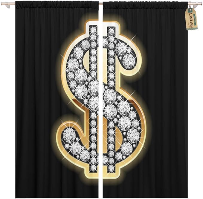 Amazon Com Golee Window Curtain Sign Bling Dollar Symbol In Diamonds Gold Blink Jewel Home Decor Pocket Drapes 2 Panels Curtain 104 X 63 Inches Home Kitchen