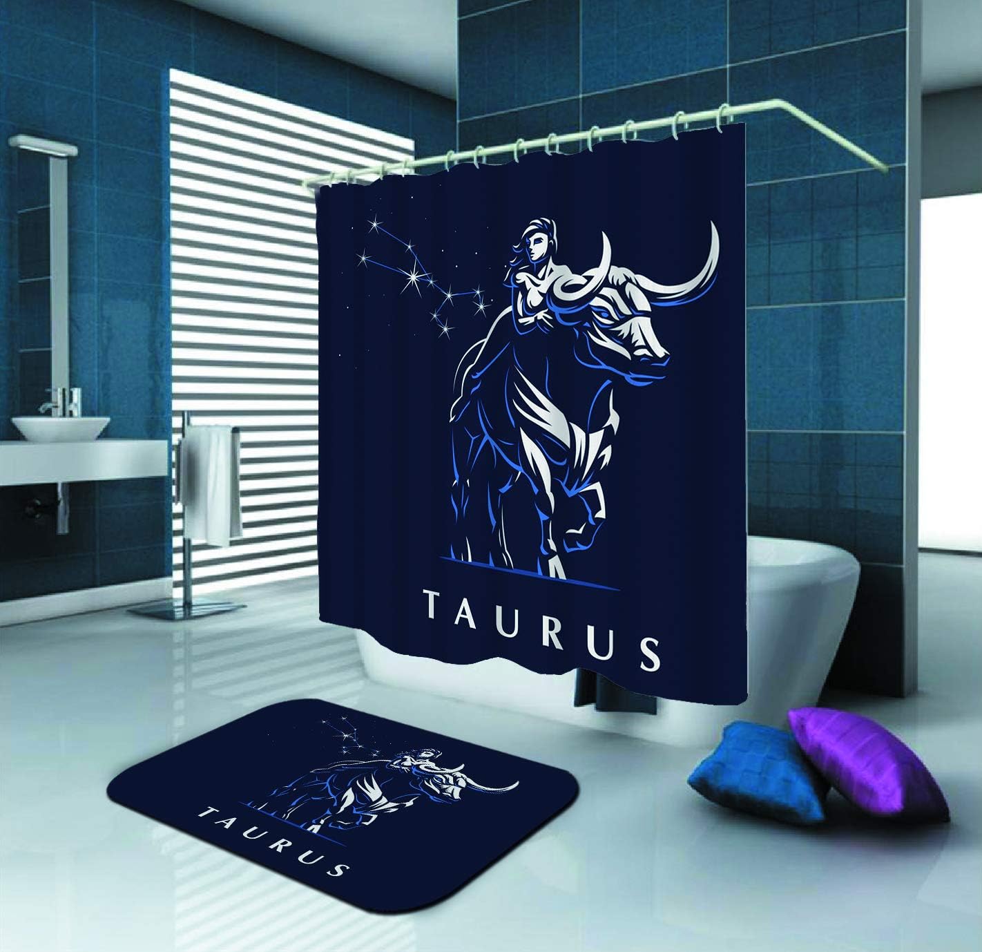 Amazon Com Sara Nell Shower Curtain Sign Of The Zodiac Taurus Bull Bath Curtain 72x72in Polyester Fabric Shower Curtains Set With 15 7x23 6in Flannel Non Slip Floor Doormat Bath Rugs Home Kitchen
