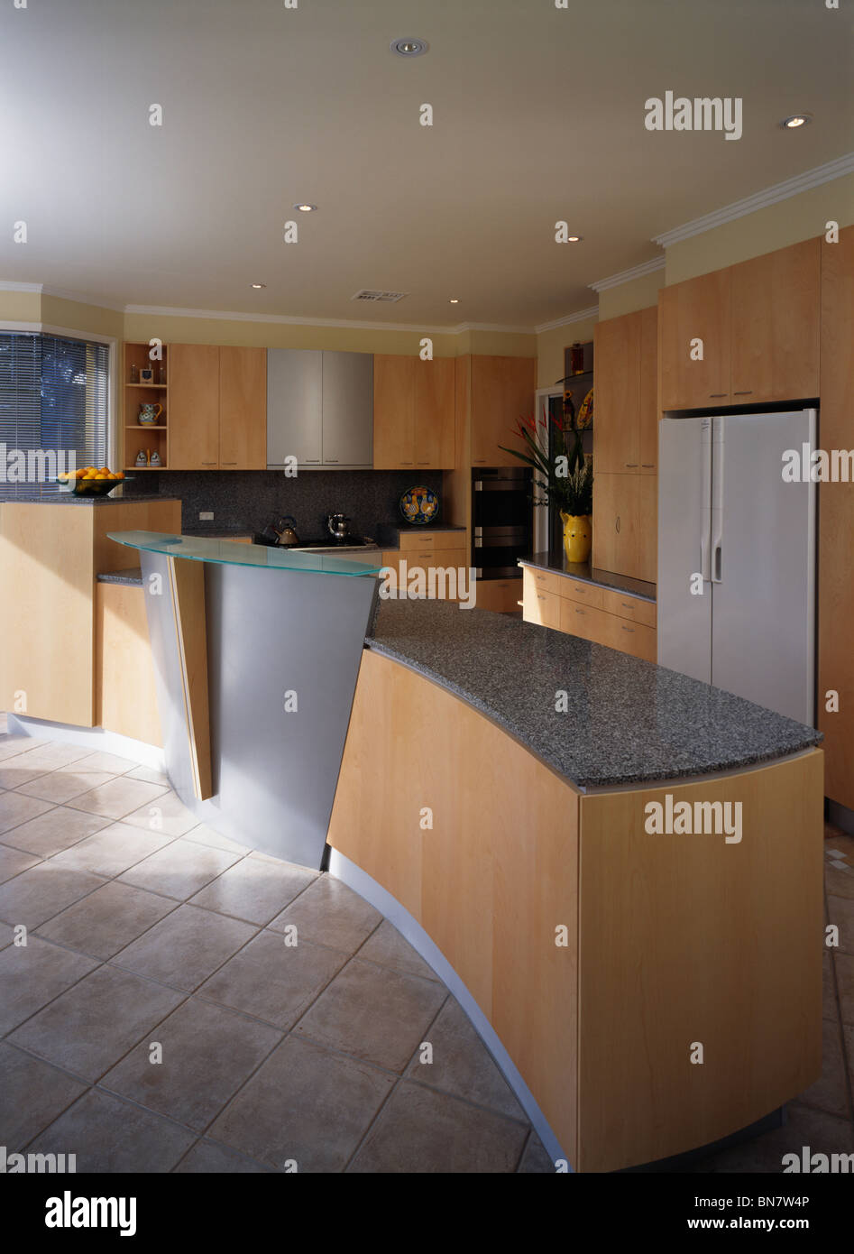 Granite Worktop On Curved Peninsular Unit In Modern Mauve Kitchen With Pale Wood Units Stock Photo Picture And Rights Managed Image Pic Foh U18864340 Agefotostock