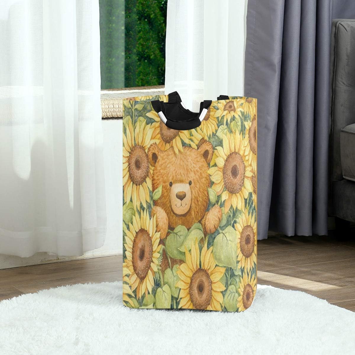 Amazon Com Gratnna Laundry Bag Cute Brown Bear Autumn Sunflower Little Print Vintage Animal Art Large Laundry Hamper Bags Standing Clothes Basket Collapsible For Dorm Travel Bathroom Home Kitchen