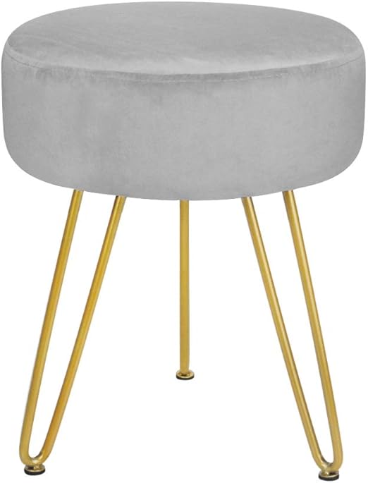 Velvet Footrest Footstool Ottoman Round Modern Upholstered Vanity Foot Stool Side Table Seat Dressing Chair With Golden Metal Leg Grey Walmart Com Walmart Com