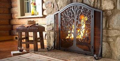 Amazon Com Plow Hearth Small Crest Flat Guard Fireplace Screen Solid Wrought Iron Frame With Metal Mesh Decorative Scroll Design Free Standing Spark Guard 38 W X 31 H X 13 D