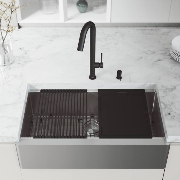 Khf200 36 Kraus Standart Pro Farmhouse Flat Apron Front Single Bowl Stainless Steel 36 L X 21 W Kitchen Sink With Basket Strainer Reviews Wayfair