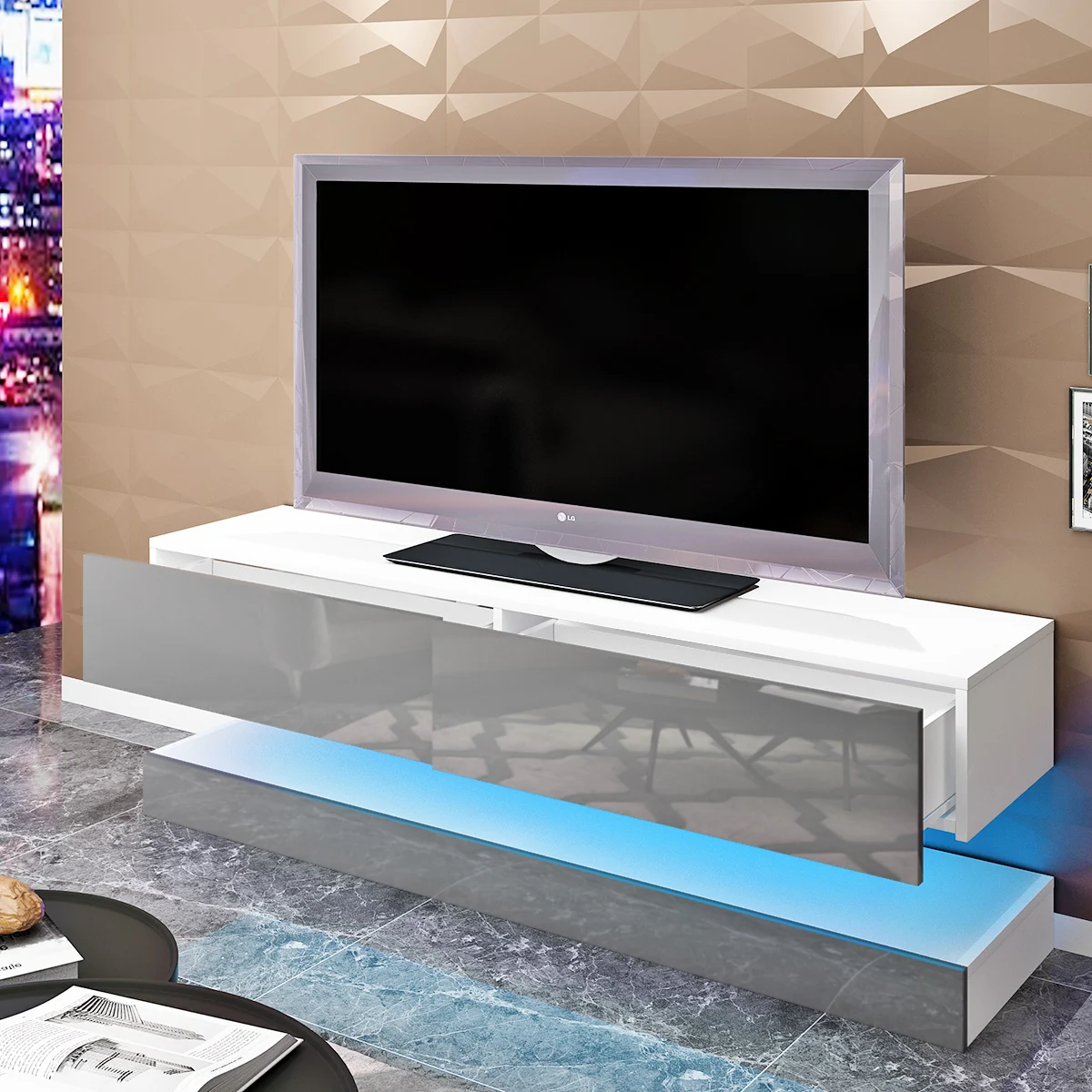 Floating Tv Unit Cabinet Stand Volant 150 Cm Body Matt White Front White Gloss Ebay
