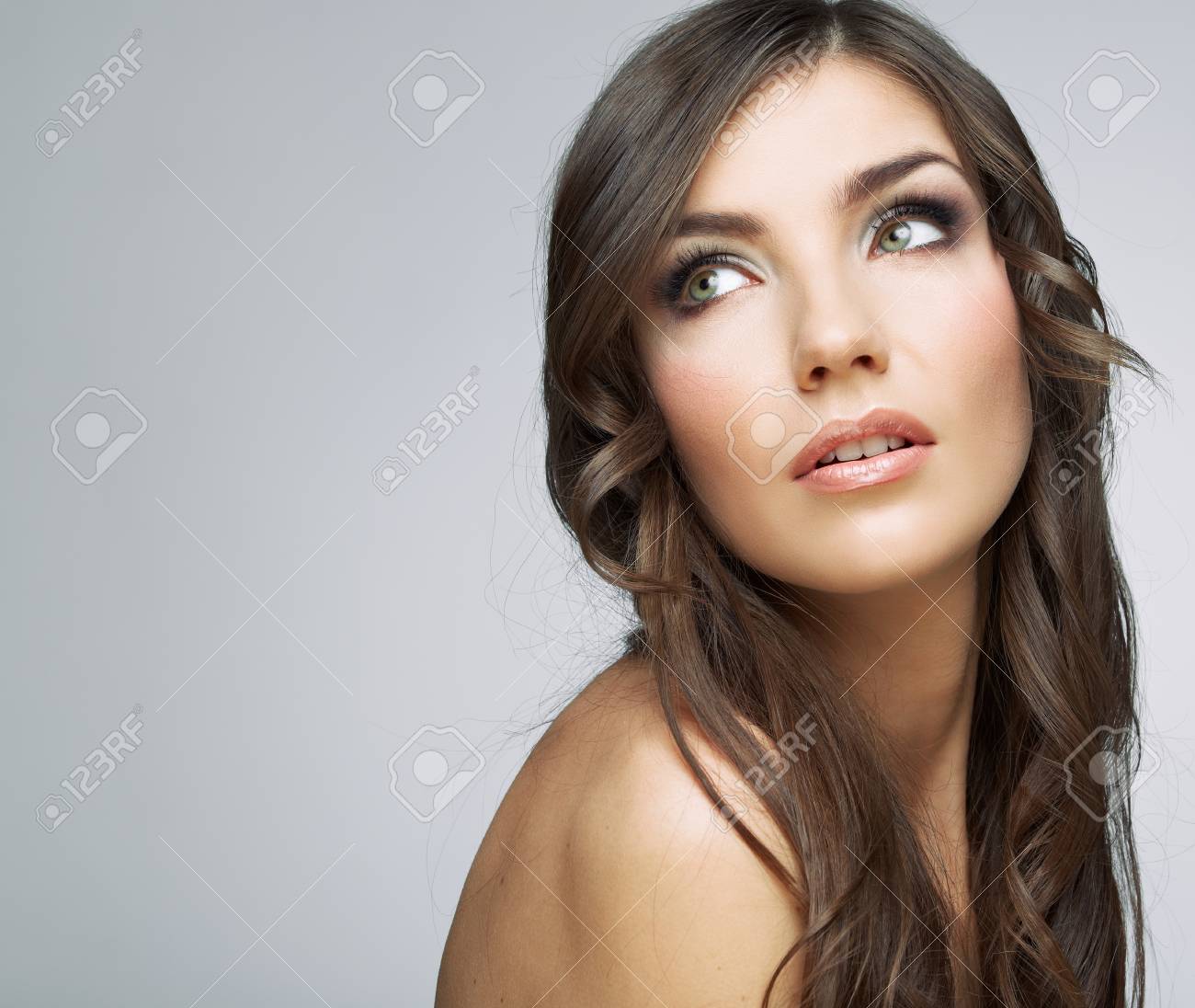 Pensive Woman Looking Up Face Angles Pose Reference Photo Studio Portrait Photography