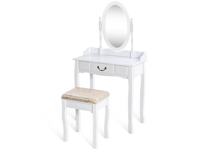 White Vanity Table Set With Stool Dressing Table For Girls Women Mirror Makeup Table Desk Room Vanity Dresser Large Bedroom Vanities W Drawer Newegg Com
