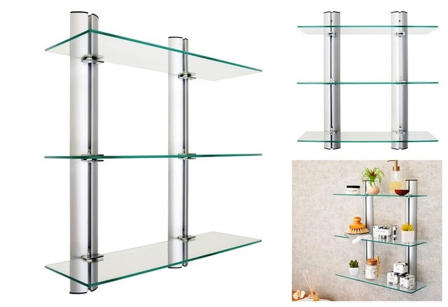 24 Beautiful Glass Floating Shelf Ideas The Shelves Are Provided Which Should Be Attached Whi Glass Shelves Decor Glass Wall Shelves Glass Shelves In Bathroom