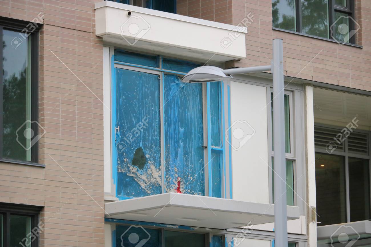 A Balcony Has Been Damaged And The Glass Pane Broken By Vandalism Stock Photo Picture And Royalty Free Image Image 83987163