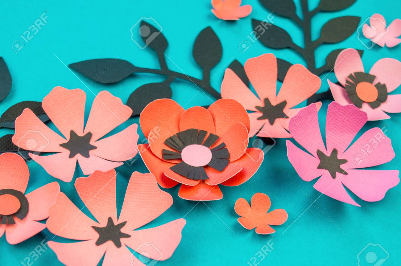 Flower And Leaves Made Of Paper On A Turquoise Background Handwork Stock Photo Picture And Royalty Free Image Image 109798160