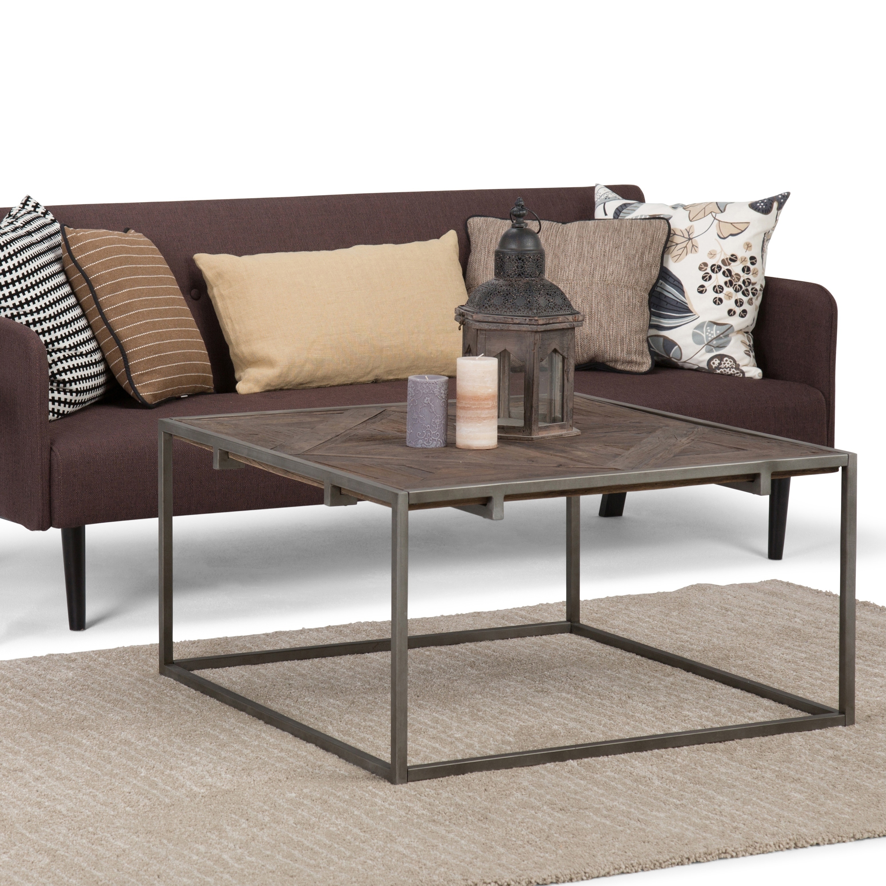 Shop Wyndenhall Abigail Solid Aged Elm Wood And Metal 34 Inch Wide Square Modern Industrial Coffee Table In Distressed Java Brown Overstock 18017413