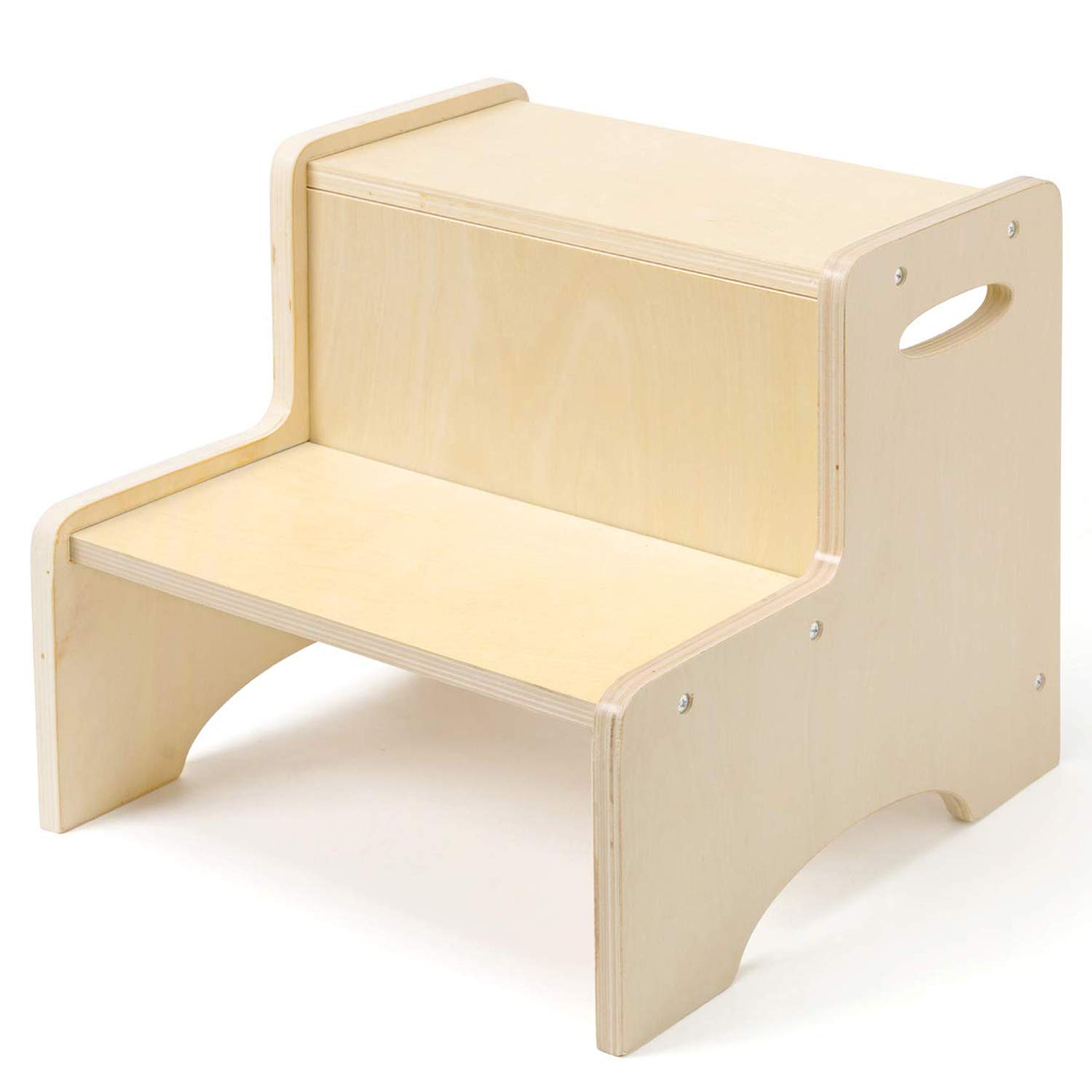 Amazon Com Wooden Toddler Step Stool For Kids Wood City Bathroom Potty Stool Kitchen Stool Two Step Stool For Bedroom Children S Stool With Handles And Safety Non Slip Pads Baby