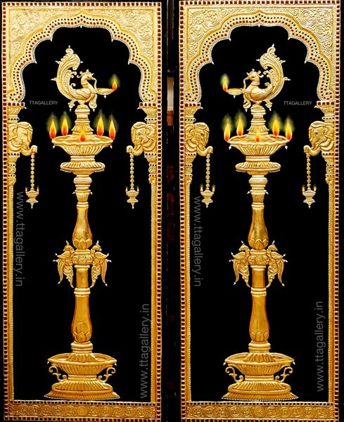 Buy Pair Of Amazing Brass Kuthu Vilakku With Peacock Painting At Lowest Price By Vgo Cart