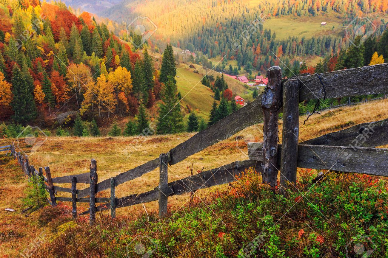 Colorful Autumn Landscape Scene With Fence In Transylvania Mountain Romania Stock Photo Picture And Royalty Free Image Image 45441867