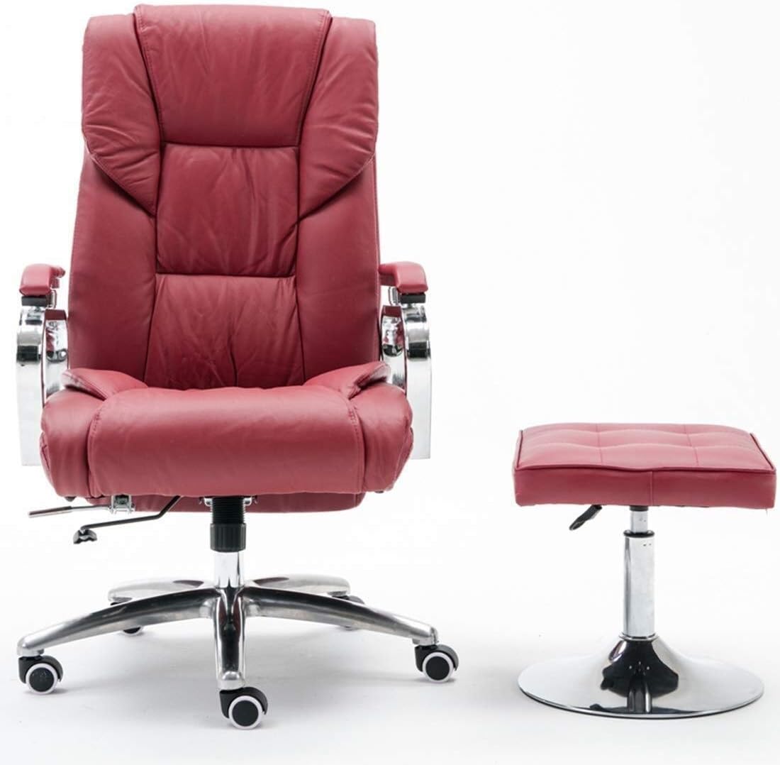 Amazon Com Wxf Leather Swivel Chair Recliner And Footstool Ergonomic Executive Office Chair Adjustable Height Sofa Armchair Color Red Furniture Decor
