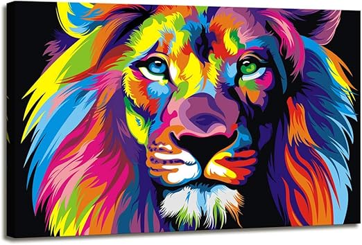 Amazon Com Large Wall Art Modern Painting Wall Decoration Colorful Lion Art Pictures Print On Canvas For Living Room Wall Decor Size 24x36inch Ready To Hang Posters Prints