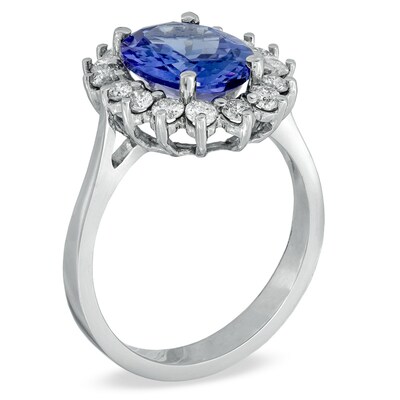 Oval Tanzanite And 5 8 Ct T W Diamond Frame Engagement Ring In 14k White Gold Oval Wedding Zales