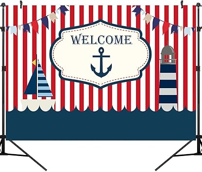 Amazon Com Nautical Red White Striped Photo Backdrop Ahoy Anchor Boat Boy Baby Shower Photography Curtain Backdrops Sailor Nautical Theme Birthday Party Decoration Banner Backgrounds For Kids Beauty