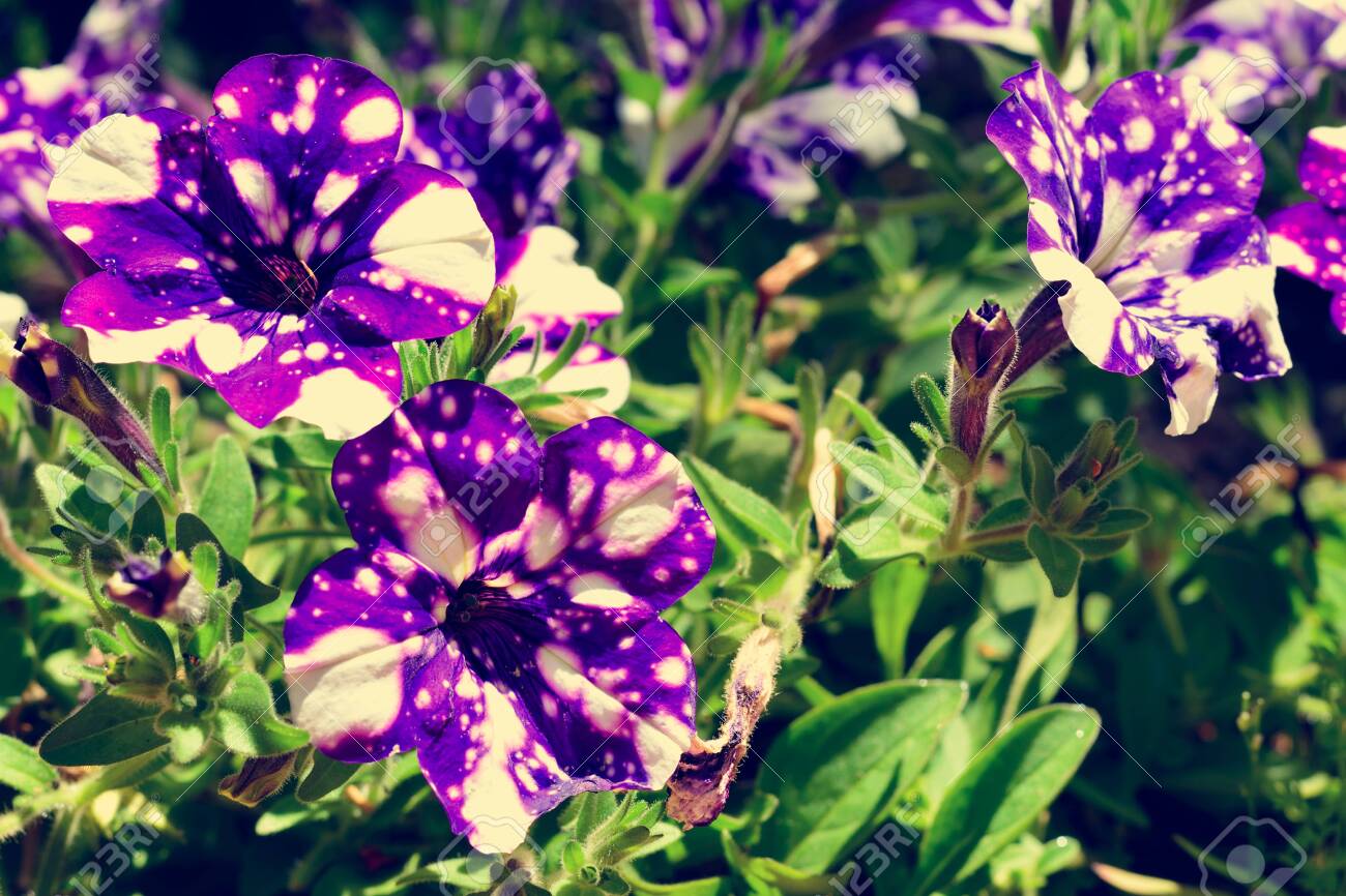 Purple Night Sky Petunia Flower In A Botanical Garden In Spring Stock Photo Picture And Royalty Free Image Image 76446262