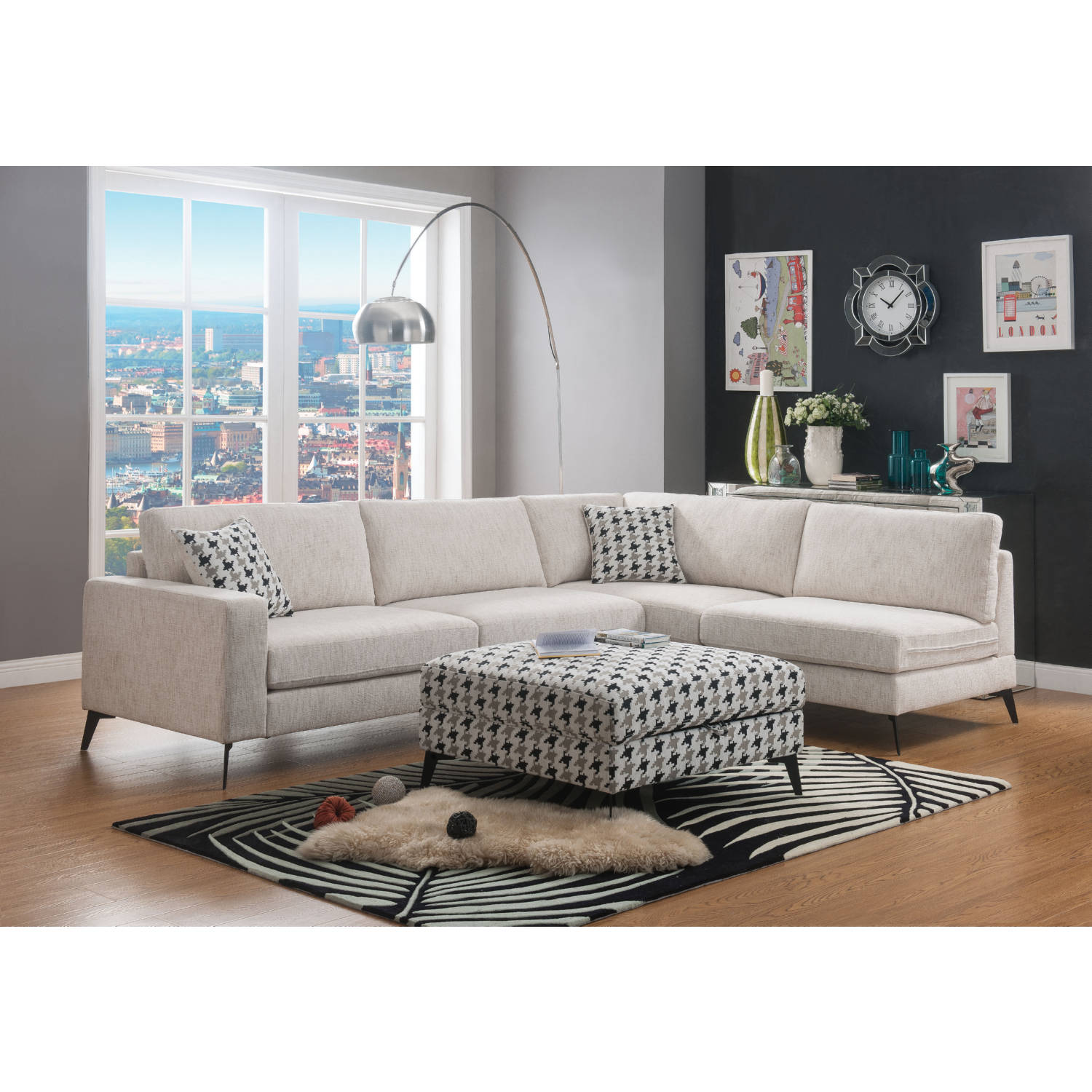 Christopher Knight Home Cleo Fabric Storage Ottoman Grey Geometric Patterned