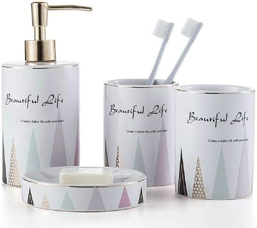 Amazon Com Wpm World Products Mart 4 Piece Ceramic Bathroom Accessories Set Multi Color Pink Gold Complete Bath Decor Kit Includes Designer Soap And Lotion Dispenser Cup Tumbler