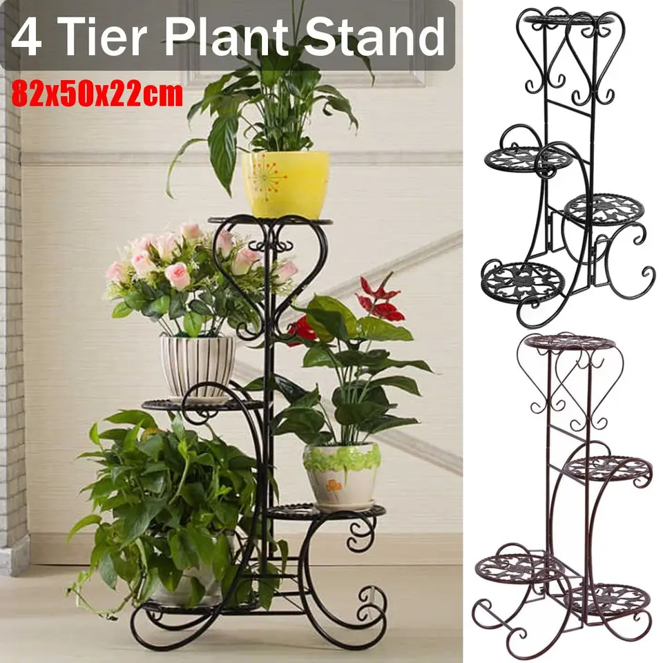 Shop Costway 3 Tier Outdoor Metal Plant Stand Flower Planter Garden Display On Sale Overstock 18730563