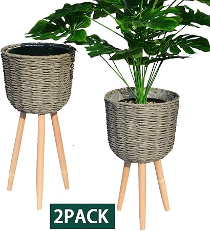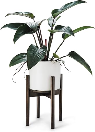 Amazon Com Mkono Mid Century Plant Stand Adjustable Indoor Modern Plant Holder Wooden Planter Stand Plant And Pot Not Included Adjust Width 8 Up To 12 Dark Brown Garden Outdoor
