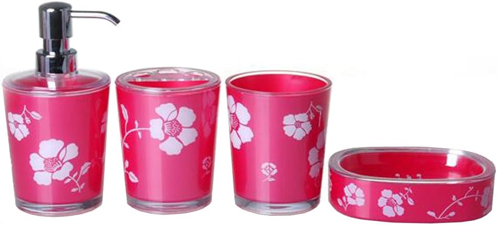 Amazon Com Estink Acrylic Bathroom Accessories Set 5 Pieces Bath Accessory Set With Soap Dish Dispenser Toothbrush Holder And Tumbler Red Home Kitchen