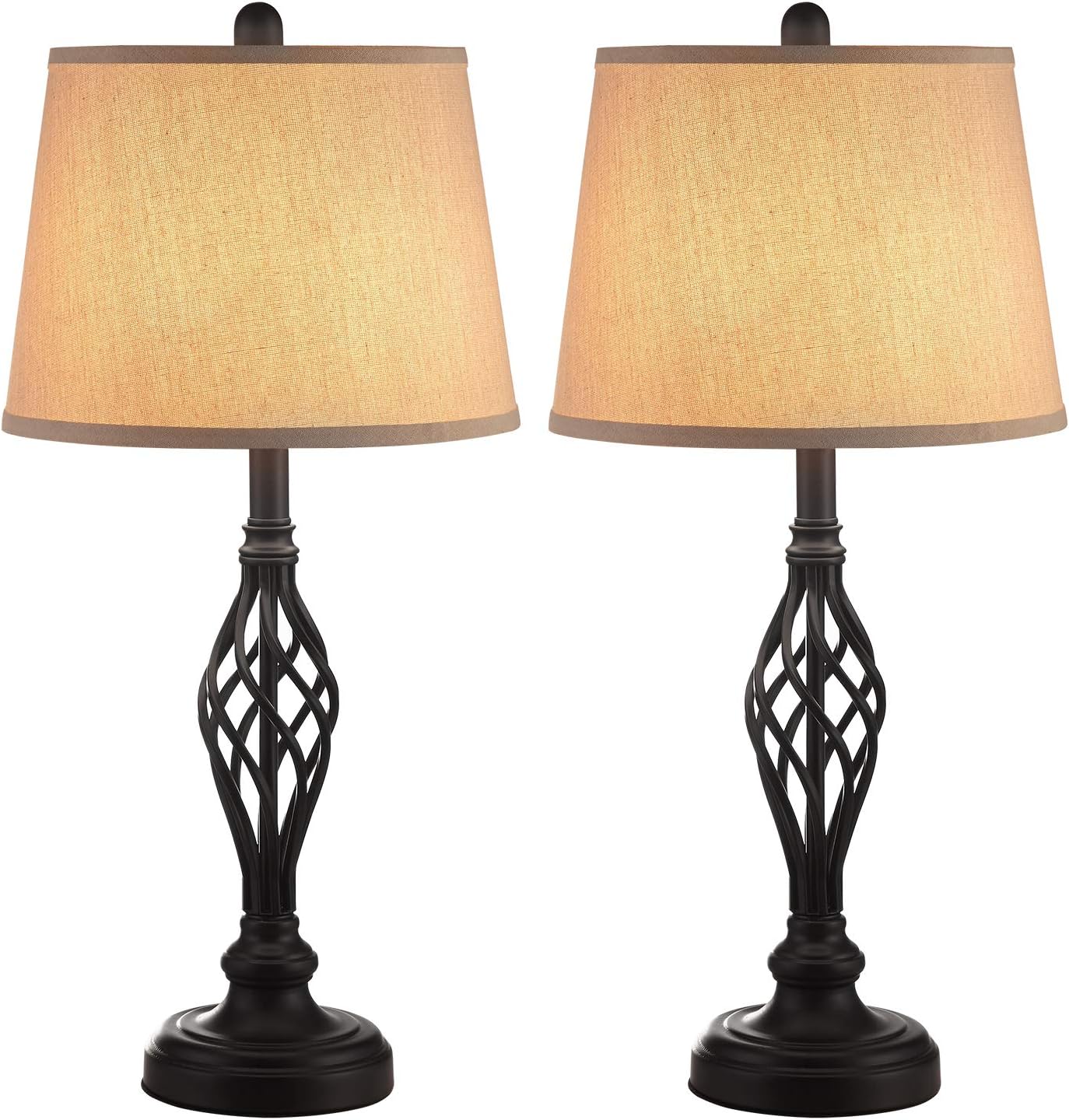 Amazon Com Vintage Table Lamp Set Kakanuo Traditional Bedside Lamp With Spiral Cage Design Base Cream Drum Shade Large Retro Table Lamp For Bedroom Living Room Set Of 2 Home Improvement