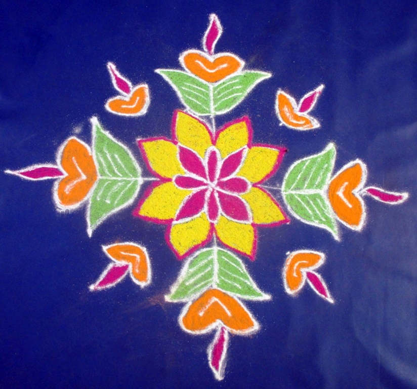Simple Rangoli Design With Colours For Festivals And Competitions With Dots 9x5 Beautiful Kolam Rangoli Designs Easy Rangoli Designs Colorful Rangoli Designs