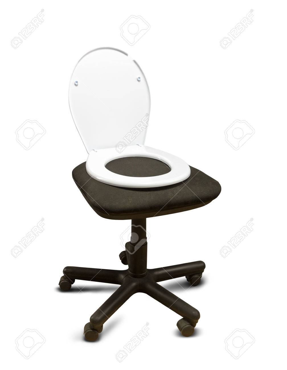 White Toilet Seat Lid On The Black Spinning Chair Stock Photo Picture And Royalty Free Image Image 56898117