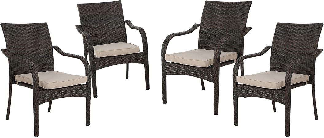 Amazon Com Christopher Knight Home San Pico Wicker Stacking Chairs 4 Pcs Set Multibrown Textured Beige Garden Outdoor