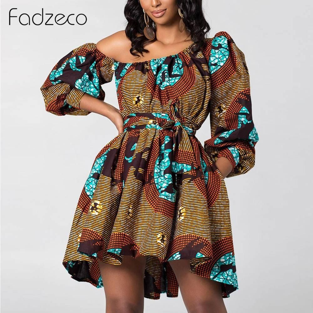 2020 Women African Dresses Dashiki National Printed Tribal Summer Mini Dress Puffed Sleeve Sloping Shoulder Vestidos African Clothes From Ferdinand07 29 87 Dhgate Com