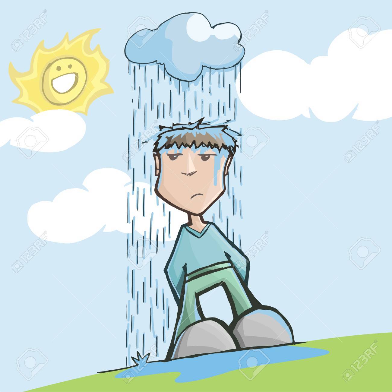 Sad Businessman Under A Rainy Cloud Sad Businessman Standing Under A Rainy Cloud