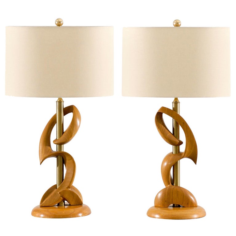 Unusual Pair Of Blonde And Brass Lamps By Heifetz For Sale At 1stdibs