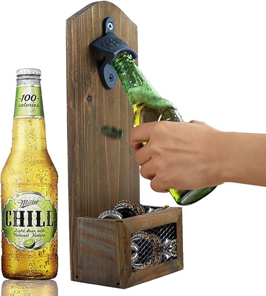 Amazon Com Bottle Opener With Cap Catcher Solid Wood Wall Mount Or Freestanding Groomsmen Wedding And Anniversary Gift Handmade