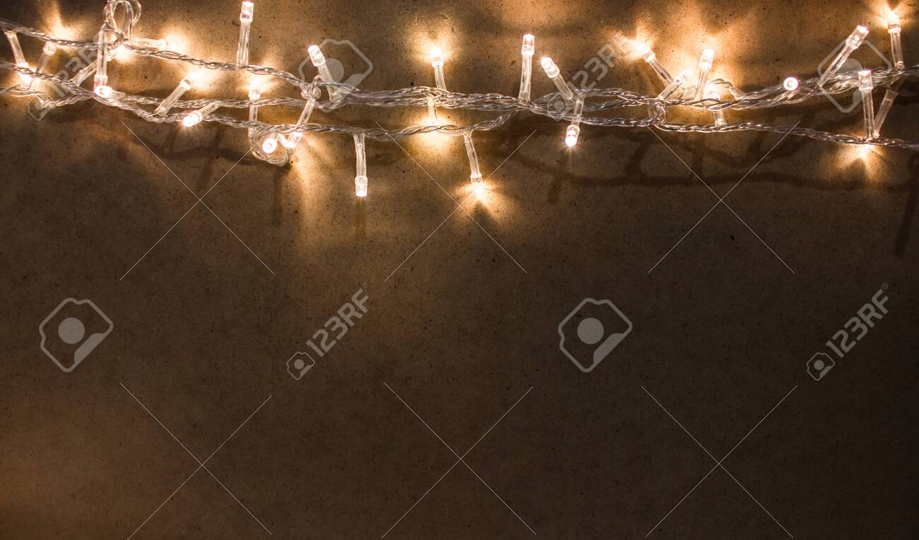Yellow Garland On A Dark Background Background With A Warm Light Stock Photo Picture And Royalty Free Image Image 117335536